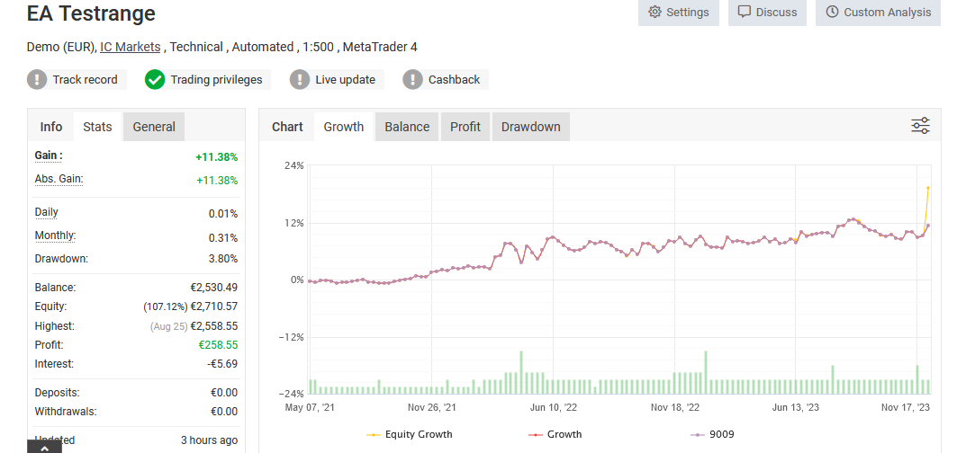 Wow! Da haben wir ja schon wieder ein Musterbeispiel! Sehr schön! Der macht sogar nochmal mehr Performance mit 11,38% mit einem Drawdown von 3,8%. Sehr akzeptable Werte! Den lass ich ganz sicher im Portfolio. ;)