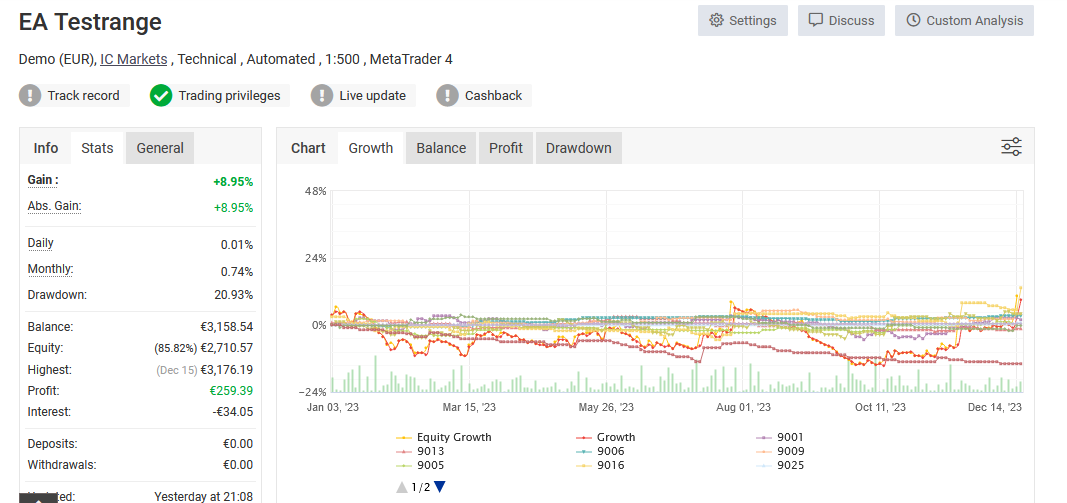 Aha, da haben wir den Kollegen von 9005. Die Performance ist nur minimal und der Drawdown auch. Hm, genauso wie ich auf 9002 und 9005 ein Auge haben muss, so auch auf diesen hier. Vielleicht will auch er uns noch überraschen?!